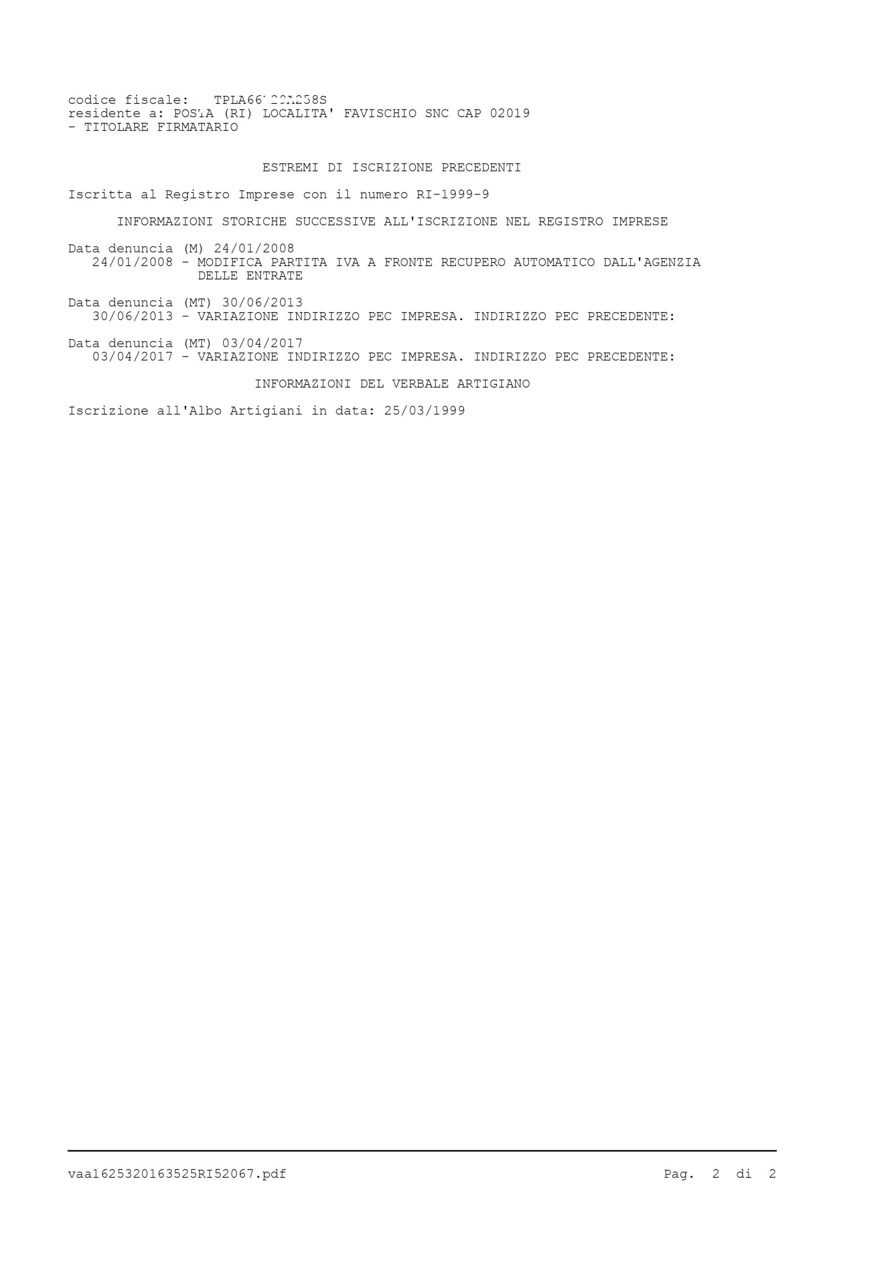- Riferimenti d’iscrizione: numero REA e numero iscrizione Albo Artigiani