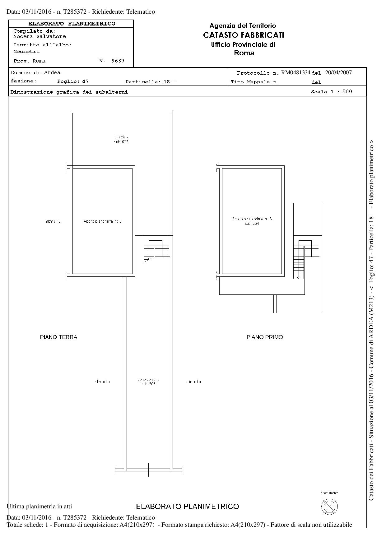 - Documento ufficiale estratto dal Catasto (Agenzia delle Entrate)
