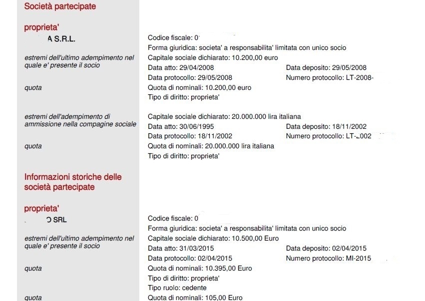 È il documento ufficiale della Camera di Commercio che elenca tutte le società di capitali italiane (SRL e SPA) in cui una persona fisica o un’azienda possiede o ha posseduto quote o azioni.