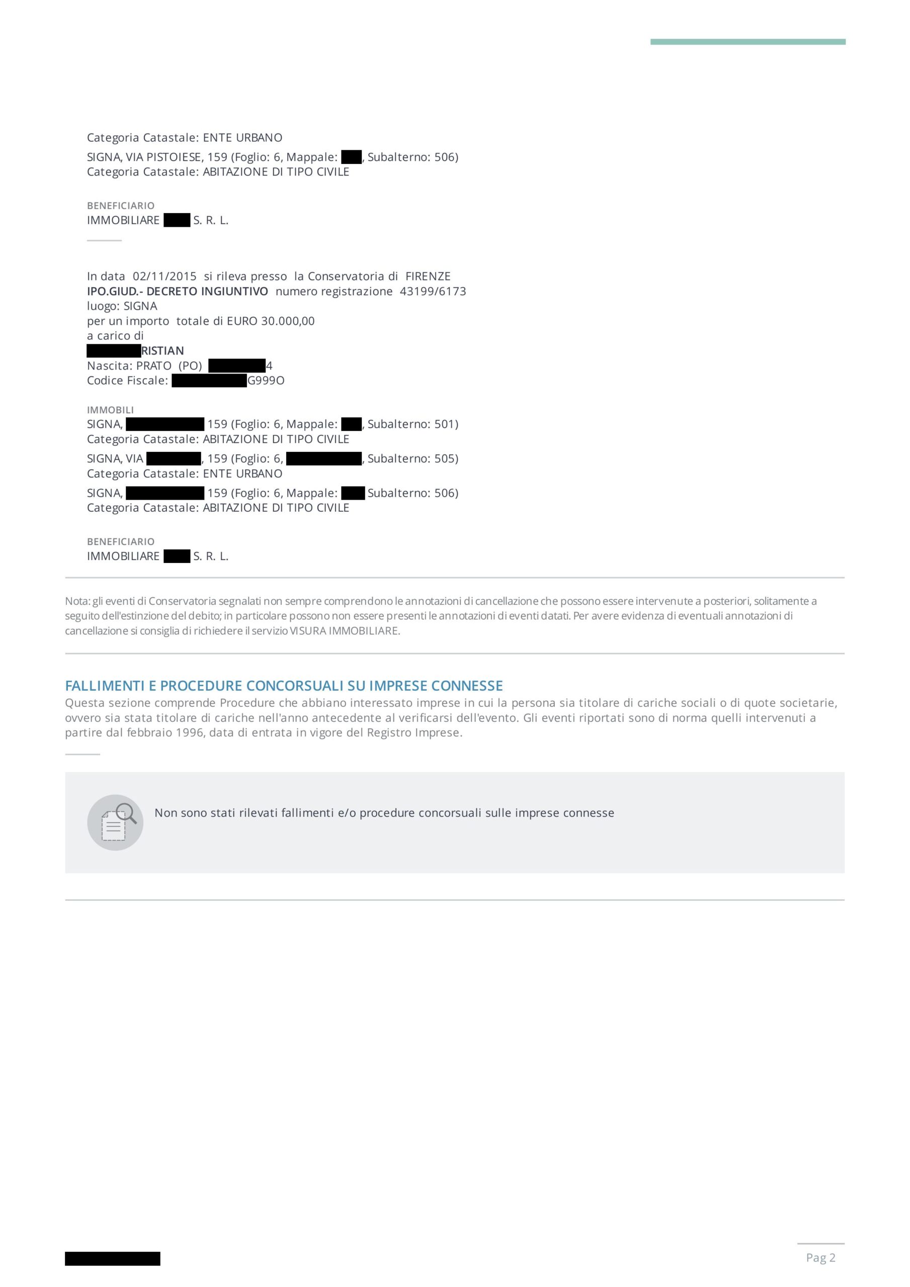 | Procedure concorsuali | Verifiche presso Tribunale | ✅ Incluso nel report |