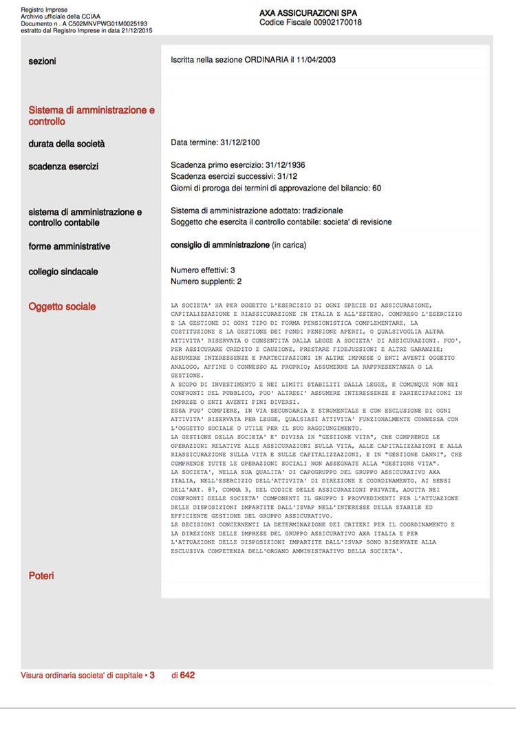 Esempio di visura camerale