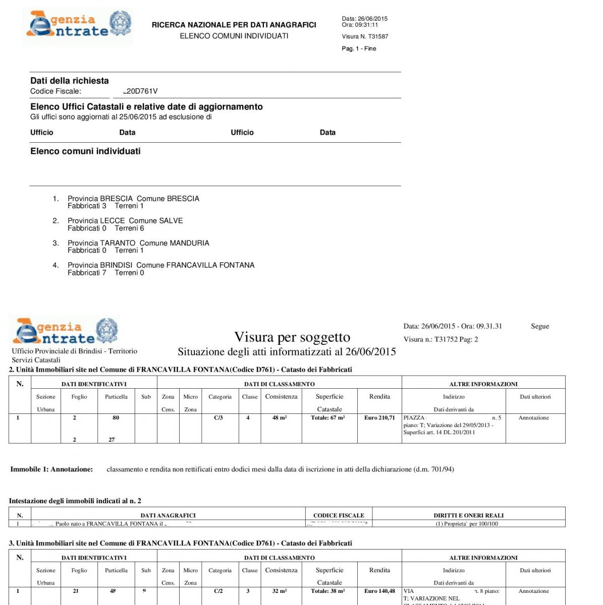 - Fabbricati e terreni: dati catastali, rendite e intestatari