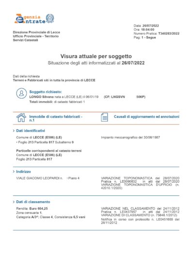 - Visura catastale nominativa