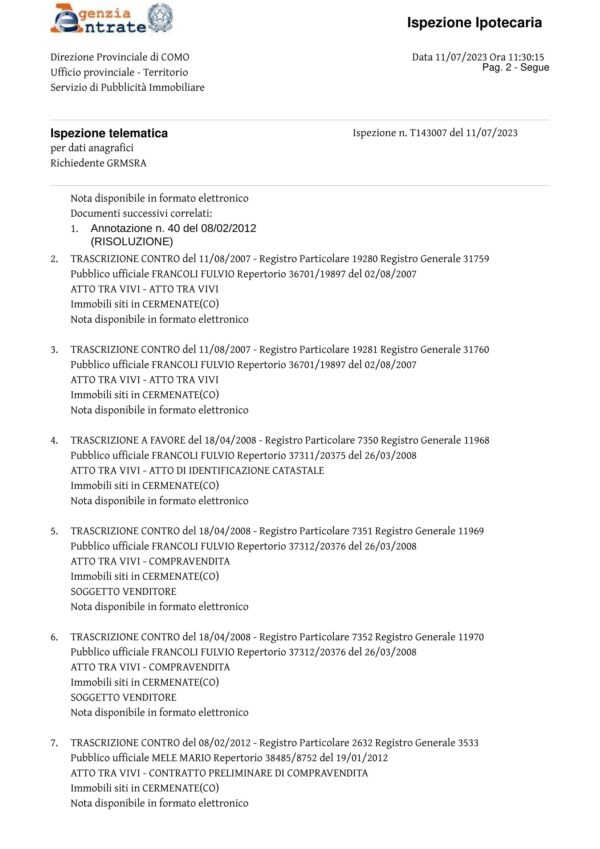 Per le formalità di interesse, richiedi il dettaglio nota: contenuto integrale dell’atto, tutti gli immobili coinvolti, importi, clausole e condizioni.