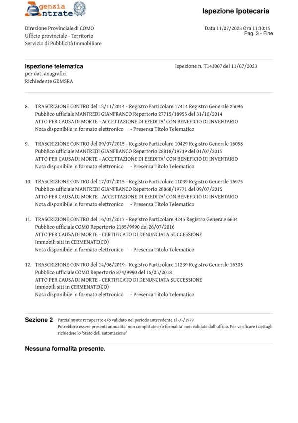 | Successioni | Ricostruire le formalità registrate a nome del defunto: acquisti, vendite, ipoteche ancora in essere |